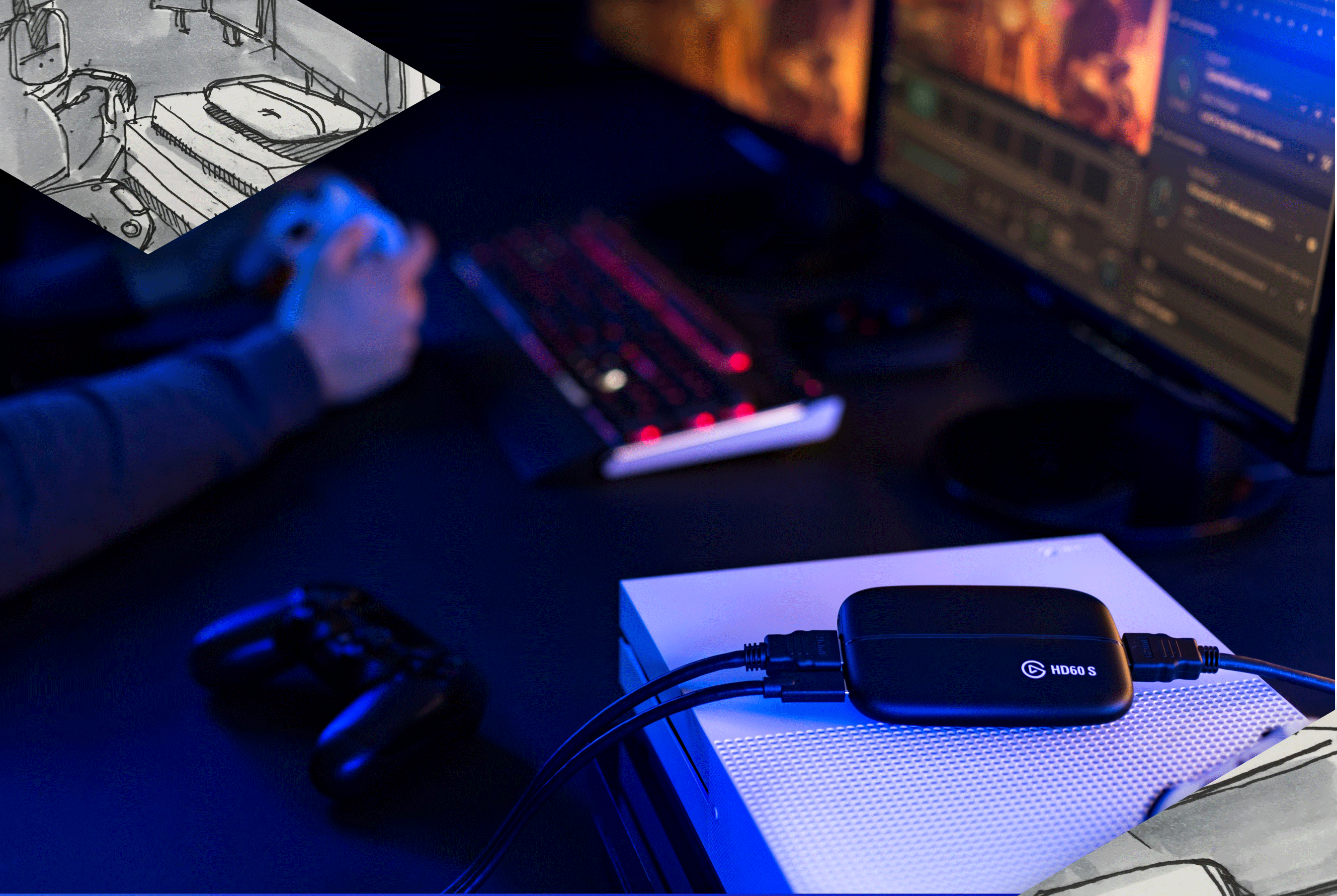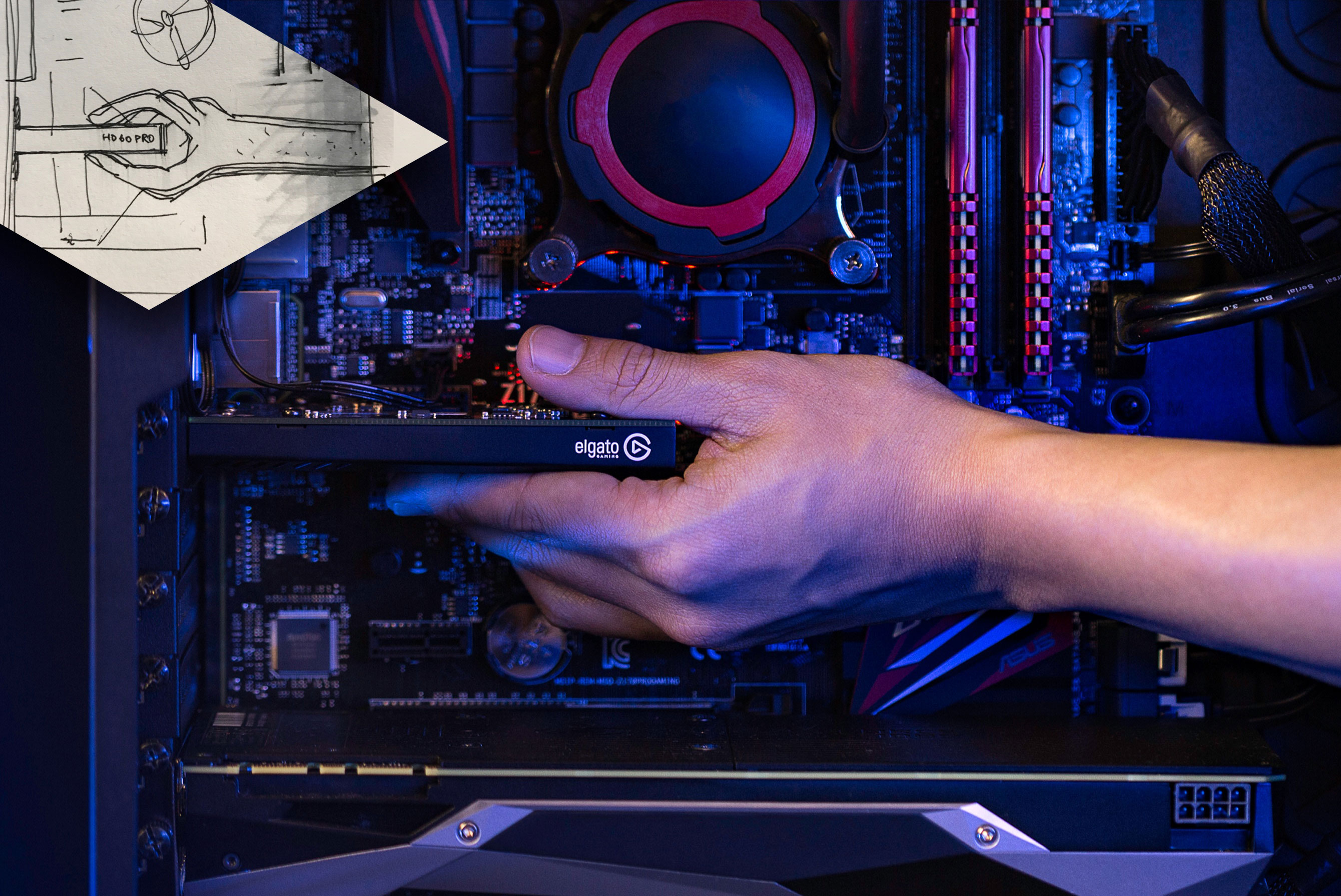 When all the pieces came together the puzzle was complete. SMAL conceived an entire style guide for the Elgato Gaming corporate identity. The visual language can be used in a way that a single element can invoke the brand identity, even if separate from the main logo. The Elgato Gaming colors were cemented into the style guide. The blue also existed previously at the company, but the style guide anchored the hues in the gaming brand’s palette. With the right color palette, came the idea and concept for the packaging.